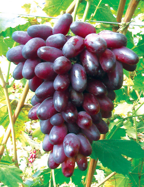 二、摩爾多瓦葡萄苗:有核鮮食葡萄。是目前最抗霜霉病的歐亞種,長勢強,一般單穗重800克左右,單粒重10克以上。紫黑色,味極甜,9月下旬成熟,是生產AA級綠色食品的首選品種,豐產性強。