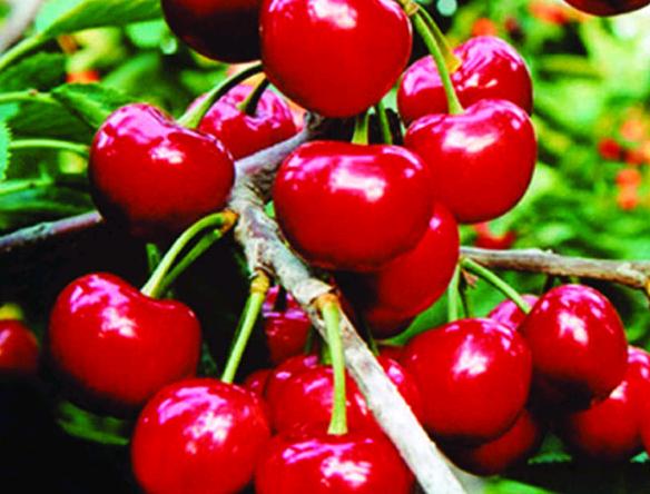 3、紅手球櫻桃:單果重15g,鮮紅,肉硬,含糖17%-20%,7月中旬成熟。果實為圓心臟形,畸形果少,果型端正,整齊美觀,果柄較短,果皮鮮紅至紫紅色,富光澤,色澤艷麗,果肉粉紅色,近核處紫紅色,果肉半硬,味甜適口,是一個廣泛的花粉授體,早實性和豐產(chǎn)性很突出,也可做其他品種的授粉樹。